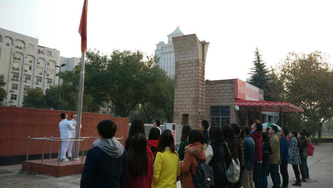 虽然深秋有些寒冷,但是2015级国旗班第四组成员还是按时来到了国旗台,整装列队,准备本周的升旗仪式。三名身着军装、手擎国旗的升旗手,迈着整齐的步伐来到国旗台前,伴着庄严嘹亮的国歌响起时,升旗手迅速地将国旗向空中漂亮地甩出,全体成员和同学们行注目礼,鲜艳的五星红旗徐徐升起,看着国旗的缓缓上升,我们心中热血沸腾。当五星红旗在蓝天飘扬,国歌声在晴空回荡时,民族自尊的血液就会在我们这些千千万万炎黄子孙的血管中沸腾。“心系国旗,忠于祖国,率先垂范,乐于奉献”是国旗班的行动准则,弘扬爱国主义精神是国旗班的崇高使命。国旗班成员通过每次升旗任务的执行,对社会责任有了更深的体会,对爱国主义有了更深刻的了解。作为一名研究生,对新时代下的爱国主义应该有更深的认识与体会。国旗班全体成员在明确自己学习目标与任务的同时,更加注重完善自我修养,提高与当代社会的接轨度,时刻保持敏锐的思想,与时俱进,争做祖国的急先锋,不畏艰难,热爱国家,更珍惜这个无数革命先烈浴血奋战下的和平家园,做自己应该做的事情,时刻保持前进的步伐。在接下来的日子里,国旗班的全体成员将继续发扬爱国主义精神,肩负起历史赋予的重任,化爱国之情为报国之行,科学地确立成才的目标和方向,刻苦学习,锤炼自己,做祖国现代化需要的人才。