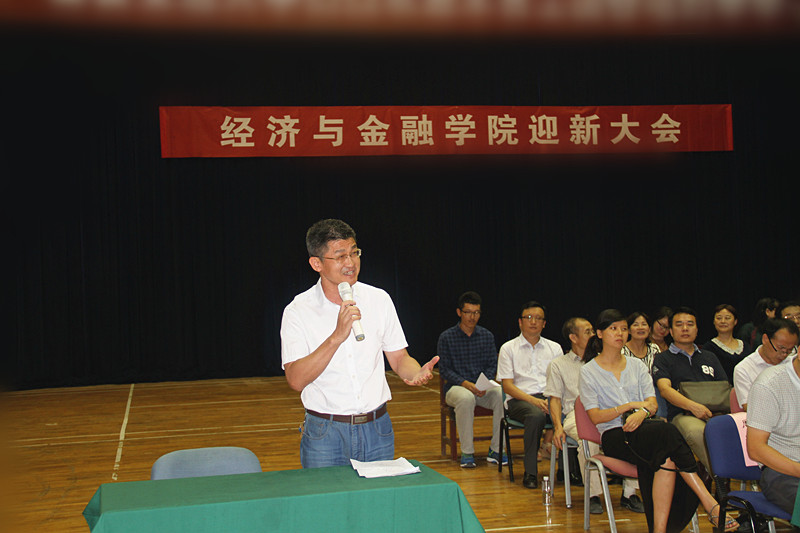 孙早院长代表学院做了讲话。他以《掌声想起来》这首歌歌词开始,代表学院全体师生对新同学表示热烈欢迎,对同学们选择西安交大、选择经济学科作为学习的方向给予充分肯定和鼓励。他说,随着人类社会的不断进步,经济学已逐渐成为了社会科学皇冠上的璀璨明珠。孙院长鼓励新生特别是研究生要注重从社会经济现象中发现问题、解决问题,学会总结创新,仔细领会这门学科的真谛,摘取这颗社会学科的明珠,真正为中国经济学理论发展和中国经济建设做出贡献。他也希望同学们记住伟大的经济学家保罗.萨缪尔森的名言:“当你们在现代经济学的海洋里扬起风帆准备远航时,我们深深的祝福你们:一帆风顺!”