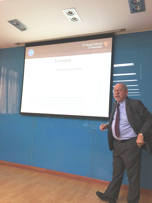 John Bilson院长首先作了题为Directional Trading in Equity Derivatives Markets的学术报告。在报告过程中他深入浅出地介绍了其研究中所提出的追踪市场变动趋势的交易模型及其在期权市场交易中的特点和应用。报告中,John Bilson院长与我院硕博士学生就金融交易制度的设计、量化投资模型等方面进行了热烈的讨论。