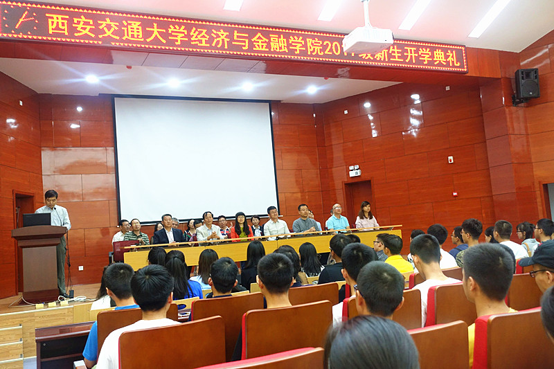 2017级新生开学典礼在财经校区东配三报告厅隆重举行。学院领导班子、启德书院与宗濂书院领导、各系主任、支部书记、院办正副主任、教学秘书、系秘书、新生班主任以及全体2017级新生共约400余人参加了开学典礼。学院党委副书记周建伦主持典礼。