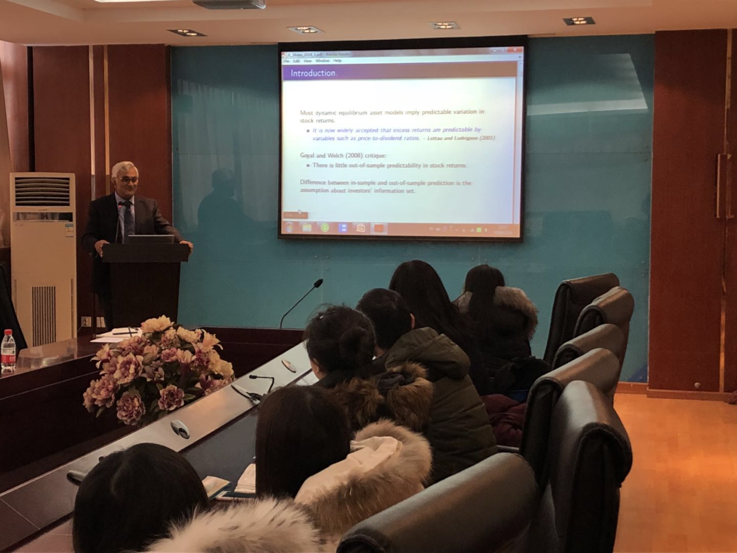 沈灏副院长首先代表学院对Jagannathan教授的到访表示热烈欢迎,对Jagannathan教授的个人简历和学术造诣向在座师生进行了介绍。之后侯晓辉教授向Jagannathan教授就我院金融学科近年来的发展情况进行了汇报;沈悦教授也就MBA培养等问题与Jagannathan教授进行了沟通交流。