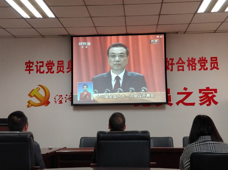 师生集中收看人大会议开幕会,结合专业所学,热议总理政府工作报告,畅谈心得体会。