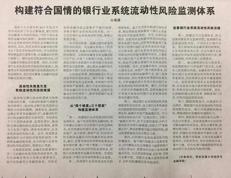 党的十九大报告和2017年底召开的中央经济工作会议都强调,要打好防范化解重大风险攻坚战,“守住不发生系统性金融风险的底线”。流动性风险的系统化是导致美国次贷危机全面爆发的直接原因,因此,防范系统性金融风险的根本在于防范系统流动性风险。作为我国宏观审慎监管的重要对象,在金融去杠杆的大背景下,银行业的系统流动性充足,对于金融系统稳定至关重要。因此,在分析银行业系统流动性风险成因的基础上,构建符合中国国情的银行业系统流动性风险监测体系,是防范化解重大金融风险亟须解决的现实问题。