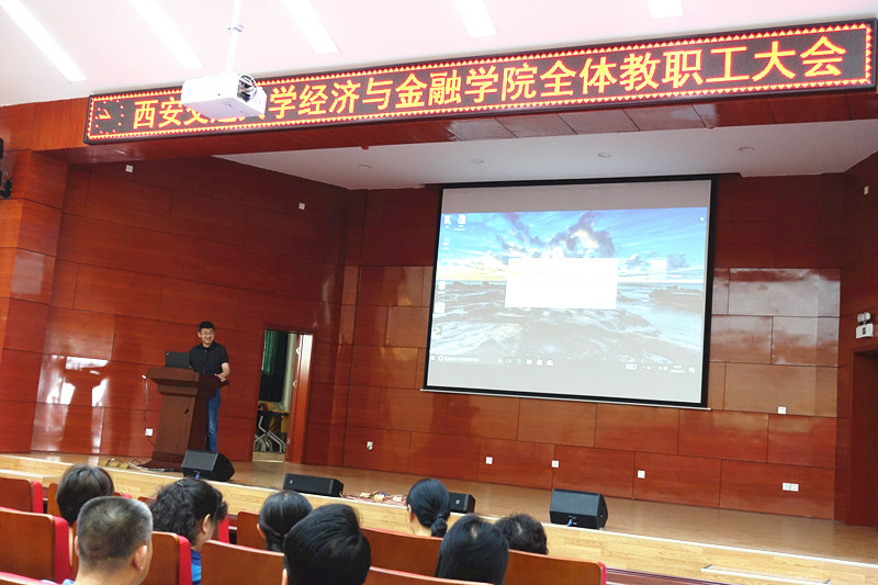 赵春艳副院长介绍了本学期学院教学督导,互联网精品教材申报工作,重点介绍了学院与伊利诺伊理工大学的“3+2”项目以及汇丰菁英班招生选拔安排。沈灏副院长为全院教职工详细解读了2018年学院绩效工资改革方案,他从设计原则、各类分配方案之间的关系、方案构成、工作任务、考核内容、绩效总额分配结构、初步测算结果分析7个方面报告了学院2018年绩效工资改革方案的制定和实施情况。沈灏副院长指出,绩效改革方案就是要打破过去的大锅饭,按劳分配,建立“目标牵引、业绩为王”的考核体系,形成“有付出就有回报”的分配原则,日后根据学科发展需求,学院每1-2年会动态调整一次评价指标。