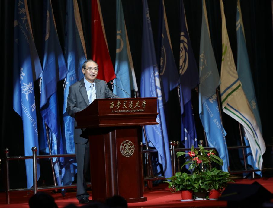 第二,不忘初心,永怀感恩。校友们即将毕业走向社会,行程万里不忘初心。不忘初心,就是要牢记母校“精勤求学、敦笃励志、果毅力行、忠恕任事”的校训。在今后人生中,在治学、为人、处事、干事上弘扬交大优良传统。不忘初心,就是要饮水思源、永怀感恩。“饮水思源”是百年交大的光辉传统,我们今天取得好的学业,未来取得好的发展,我们要感恩父母和家庭,要感恩母校和老师,要感恩这个伟大的时代和社会。不忘初心,就是要弘扬和学习西迁精神,作为交大学子,毕业后我们走向社会,我们要学习、弘扬和传承好老一辈交大人“胸怀大局、无私奉献、弘扬传统、艰苦创业”的西迁精神,在习近平新时代中国特色社会主义思想的指引下,为实现中华民族伟大复兴的中国梦作出我们西安交大学子应有的努力和贡献。