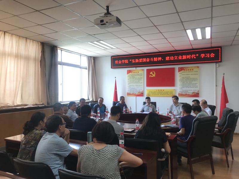 国贸系袁晓玲教授和王增涛教授、产贸系杨秀云教授、金融系何建奎副教授、财政系姚公安副教授、电商系应喆副教授分别发言,结合教书育人和科研工作分享了他们的学习体会。