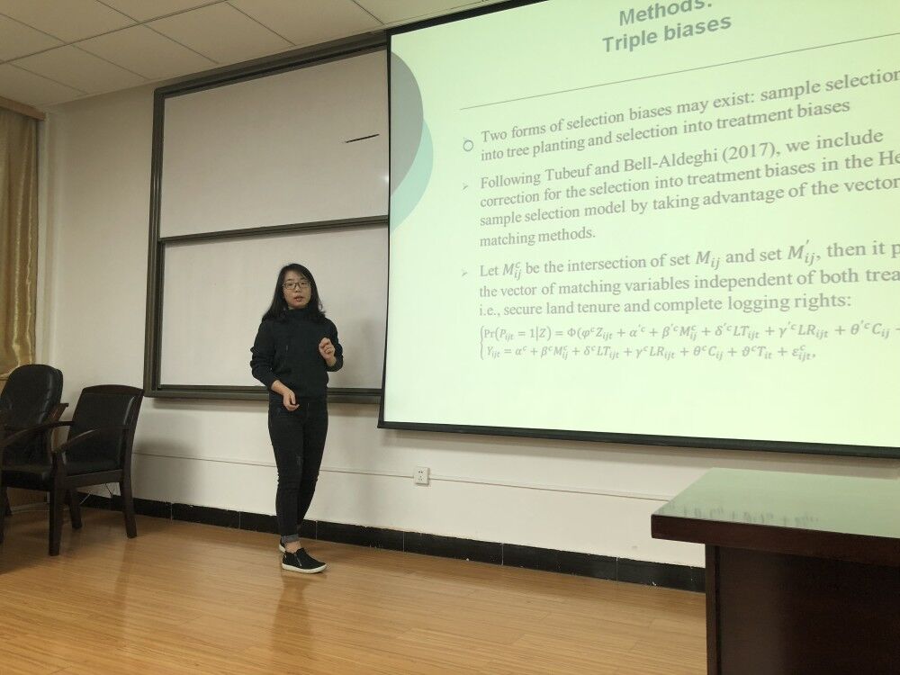 9月17日晚,林颖老师作了题为《Land tenure,logging rights,and tree plantation:empirical evidence from smallholders in China》的精彩学术报告,分享了她近期发表在国际SSCI权威期刊《China Economic Review》的最新研究成果。