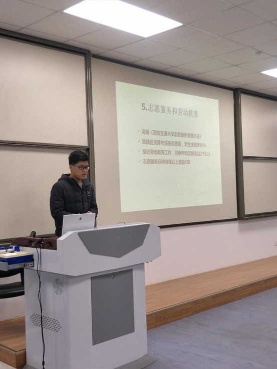 院团工委副书记任超从深入开展思想政治引领、扎实开展骨干培育工作、鼓励学生创新创业创优、持续开展实践育人工作、志愿服务和劳动教育、美育工作品牌化发展、提升体育精神育人内涵、严抓基层组织建设导向和推进改革创新试点工作九大层面,对校团委2019年工作进行了传达。