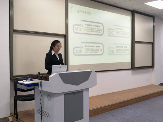 吴荟敏同学与大家分享了2018年赴清华北大两校访问活动的感想。她说,两校浓厚的学习气氛、完善的学生工作体系、多样的实践活动和党建创新活动令人印象深刻,希望同学们以两所一流高校的活动为标杆,营造更加浓厚学习氛围,提高参与活动的积极性。