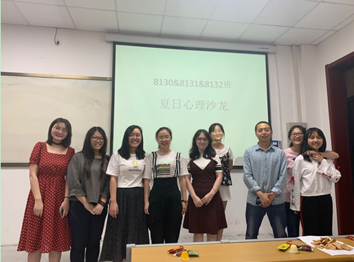 硕8130班、硕8131班和硕8132班联合举办夏日心理沙龙主题班会,心理沙龙以“你划我猜”的心理小游戏拉开序幕,通过有趣的小游戏,同学们充分缓解了压力,放松了心情。硕8133班以心理健康知识竞赛和观看励志电影《阿甘正传》为主线,阐述“乐观的心态”以及“对自我的肯定”在学术和生活中的重要性。硕8134班播放了缓解心理压力的视频,然后加以讨论,从中体会与感悟缓解心理压力的方法。硕8135班的活动主要形式是同学间的相互交谈以及“时间胶囊”游戏。硕8136班通过PPT解说、播放视频等形式共同分享了现阶段学习生活中存在的困惑与解决办法。期间,学院还特邀心理咨询中心李红燕老师,为大家做了一场题为“提升自我意像转化山大压力”专题报告。