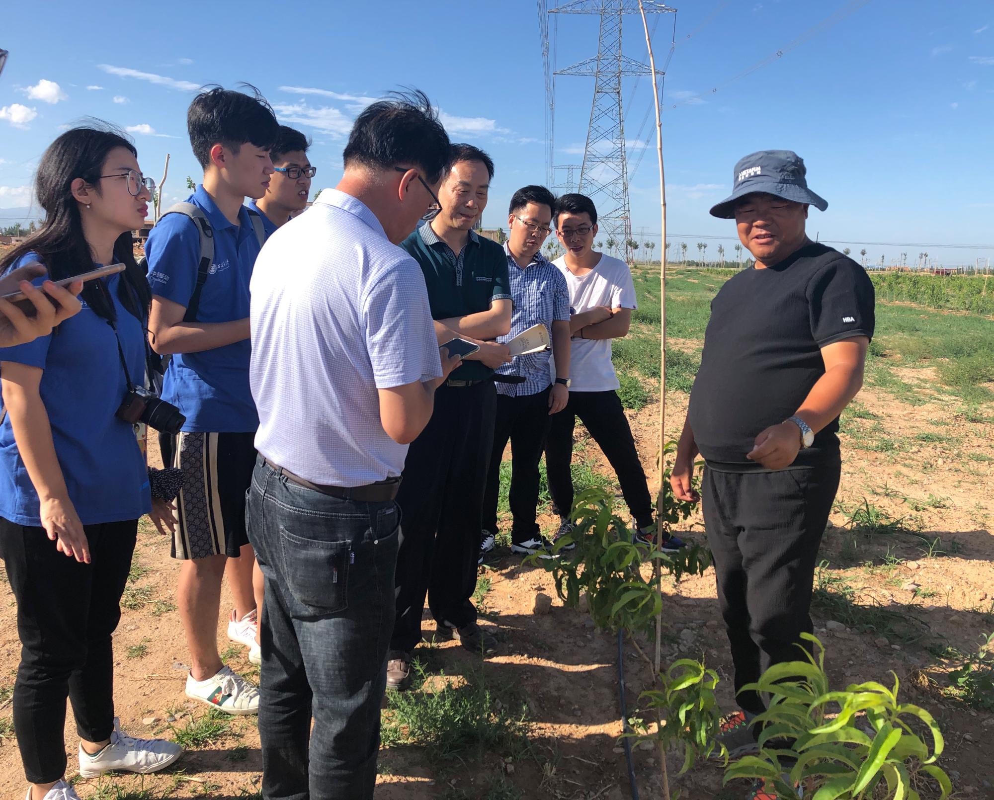 在武河千亩桃园,宁夏正果农业发展有限公司负责人牛学东向大家介绍,公司隶属北京正果集团, 2016入驻宁夏,是一家打造林果产业品类品牌全产业链、实施一二三产业融合发展、田园综合体建设的综合农业发展公司。他们根据宁夏大学、林科所等专家的建议,在贺兰山东麓沿地势条件,建设高品质桃园,本地土壤沙石化非常严重,不适合种植粮食作物,但可以种植果业。公司采取农民土地流转,雇佣当地农民种植桃树,解决一大批劳动就业问题,切实帮助农户脱贫致富。