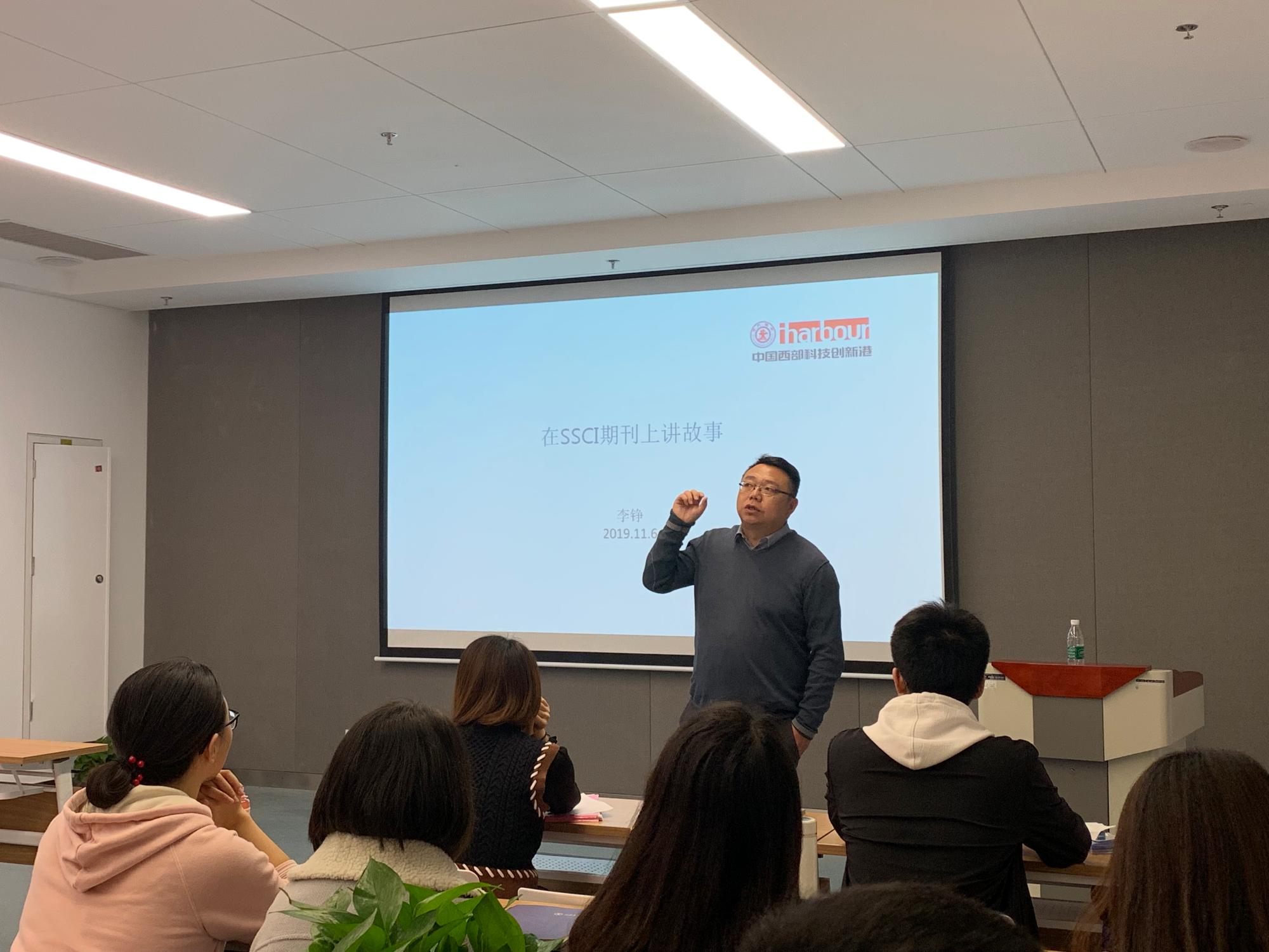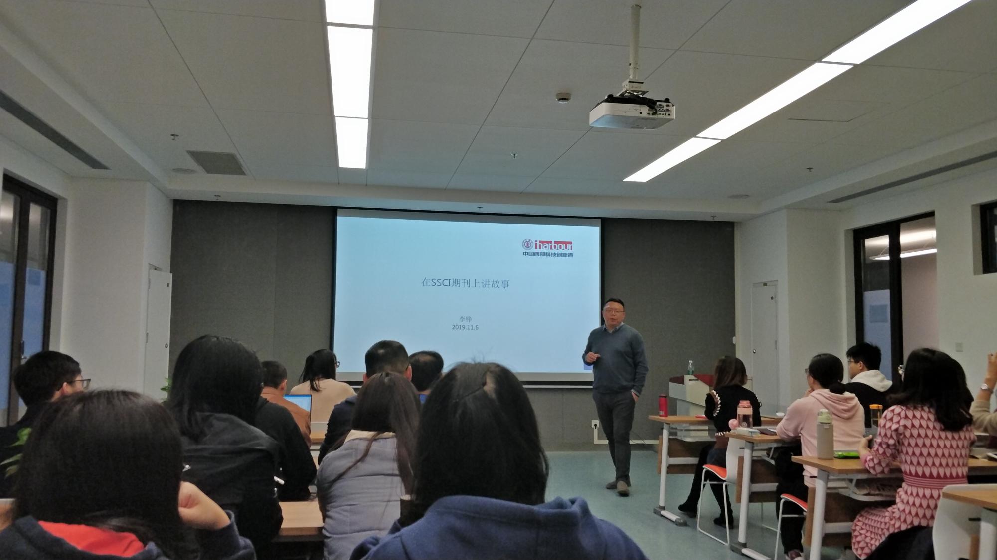 11月6日,在涵英楼8088室,“博文论坛”首次在创新港成功举办,本次论坛特邀李铮教授开讲,题为“在SSCI期刊中讲故事”。