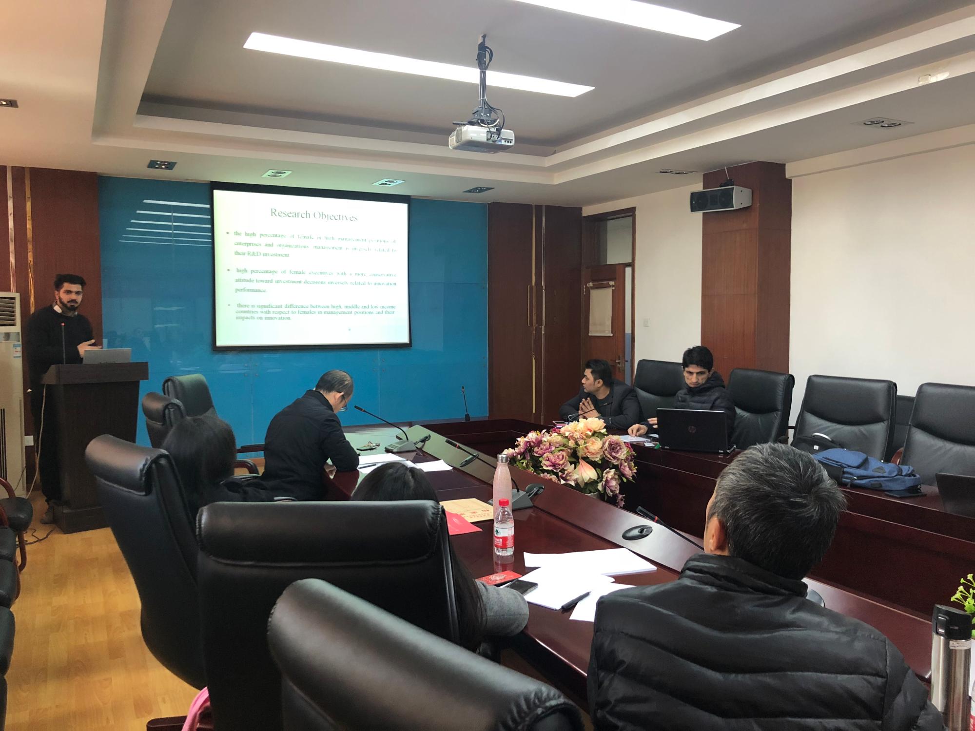 在806国际交流厅对2017级和2018级硕士、博士留学生进行了中期考核。本次考核由温军副院长主持,9位博士、硕士生导师和留学生负责老师参加。