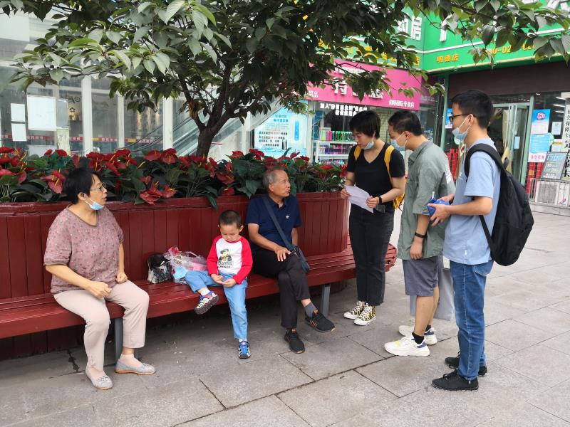 5人实践团队在西安市区展开调查研究。团队实地走访了高校、超市和社区等地,对大学生、商家、消费者及居民就疫情带来的影响进行了深入访谈。