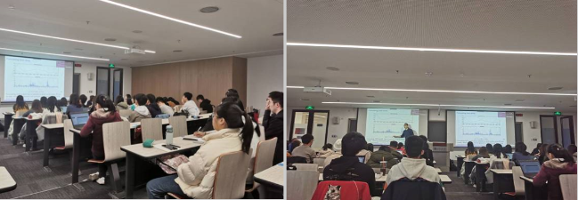 为了满足同学们对计量经济学知识的需求,夯实经济学理论基础,改善学生数量经济基础薄弱的环节。学院特邀杰出校友、英国卡迪夫大学助理教授徐永登博士作“计量经济学”系列讲座,12月5日第一讲在创新港5-5025正式开讲。本次讲座开通了现场教学和线上直播双通道,线下教室听讲的有一百余人, 线上观看直播的人数达48人。