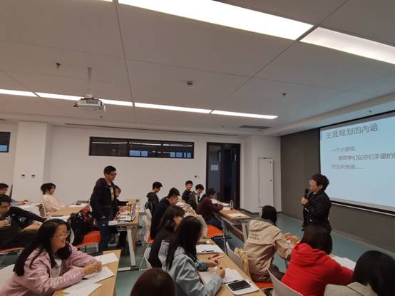 2006届硕士毕业生,通过自我介绍,作为学姐迅速和同学们拉近了距离。培训由一个小游戏展开,董老师将0-120岁作为整个生命区间,引导同学们对自己的人生做出初步规划,并分享自身的职业发展经验,向同学们讲解“生涯”的内涵。