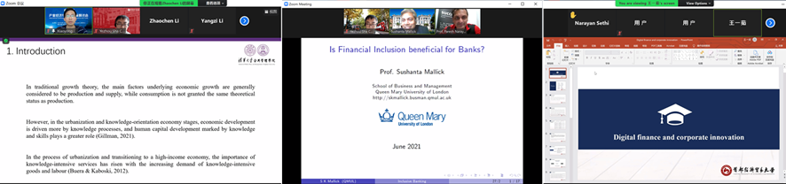 杨秀云教授分别做了题目为“COVID-19 Research Outcomes: An Agenda for Future Research”、“Is Financial Inclusion beneficial for Banks?”、“Endowment Structure and Role of State in Industrialization and Reforms”、“Opportunities and Challenges for the Development in the Era of Digital Economy”的主题报告。