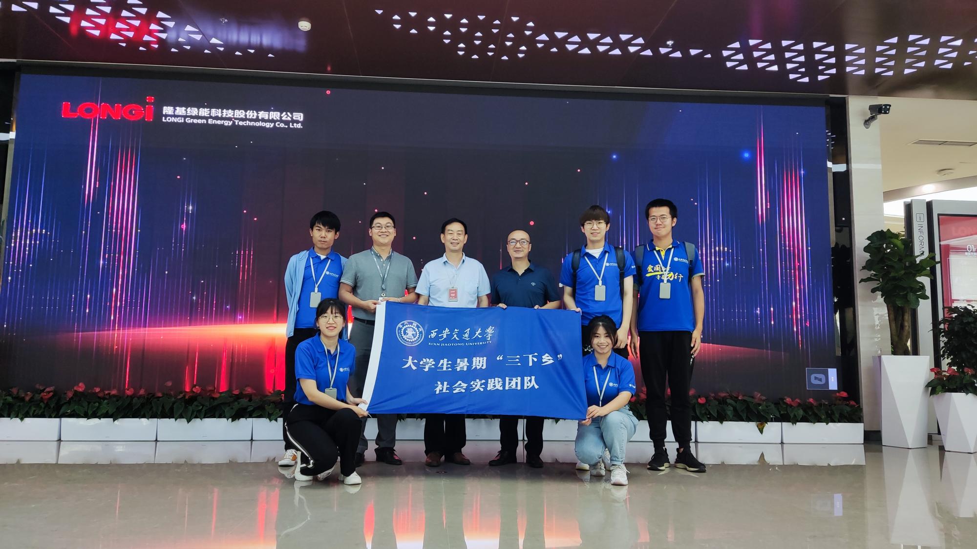 团工委书记王平老师的带领下,博文实践团队来到隆基绿能科技股份有限公司(简称“隆基股份”)进行暑期社会实践调研。隆基股份品牌部王敏辉总监和李濛经理给予了热情的接待。本次实践旨在探究数字经济背景下光伏产业数字化转型问题。