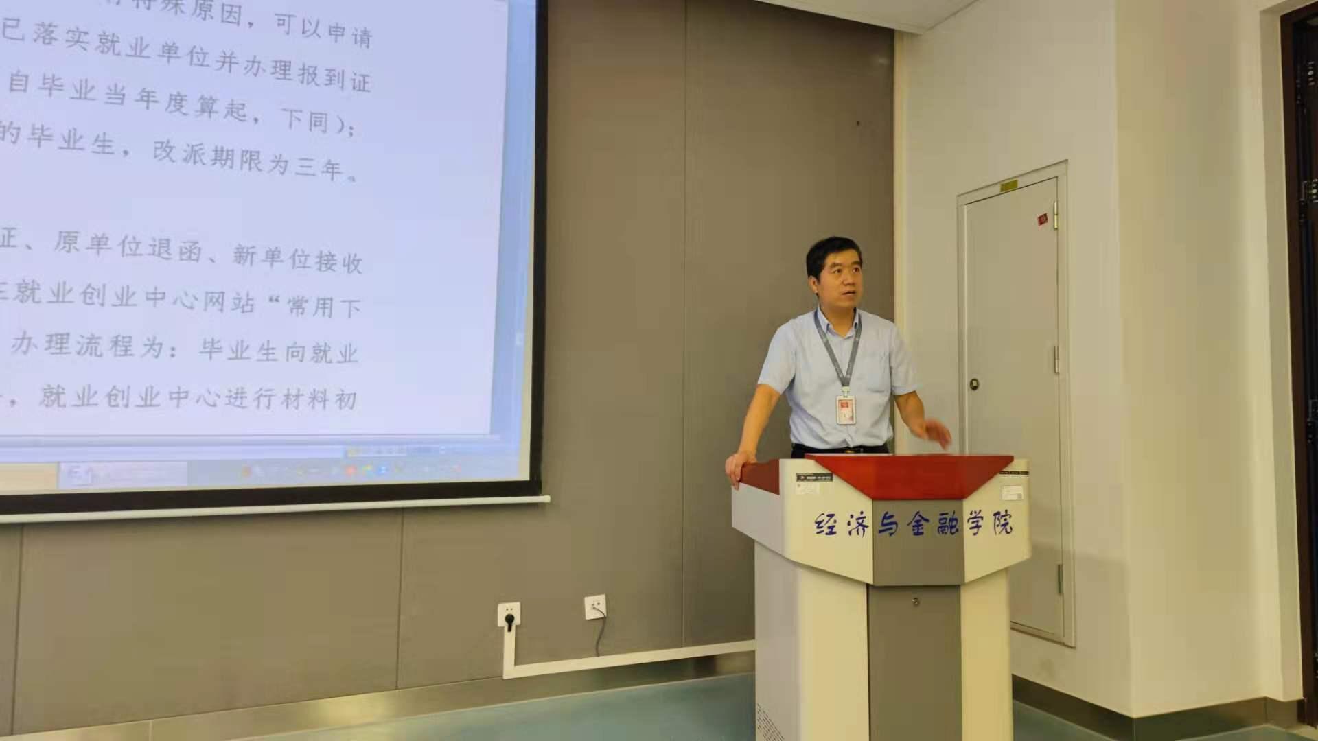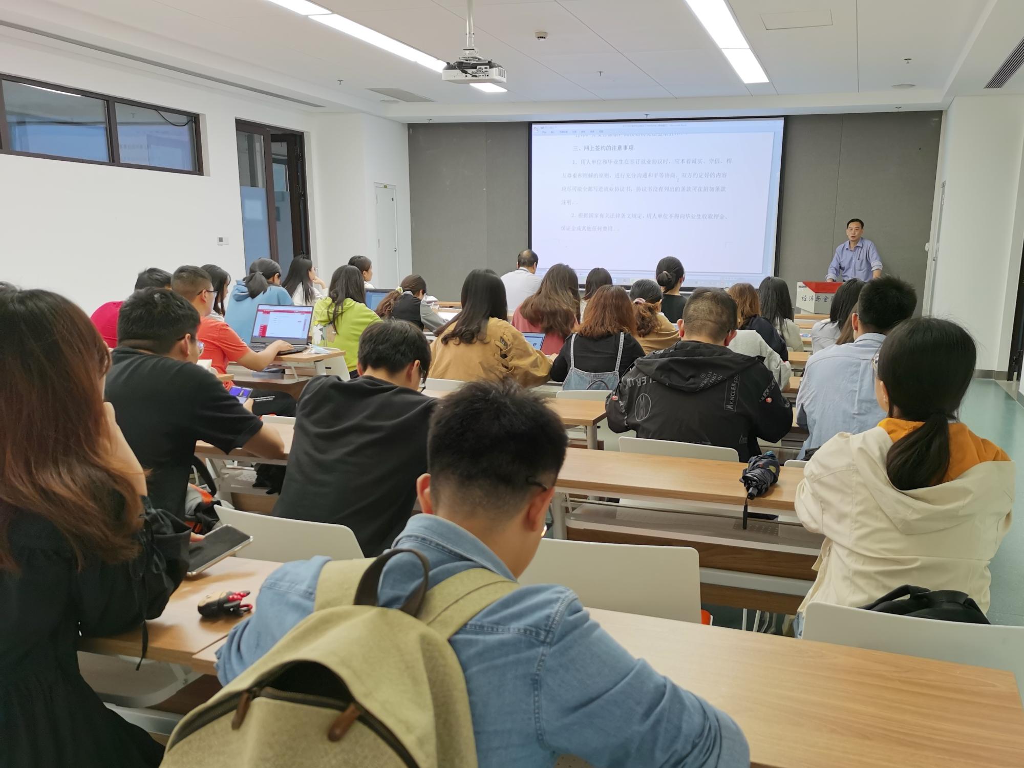 为了做好2022届毕业生就业创业工作,帮助学生了解就业政策,理顺就业思路,以积极的心态面对就业工作,学院于9月24日下午在涵英楼8088教室举办了2022届毕业生就业指导和动员会。院党委副书记周建伦、辅导员王平及毕业班同学参加了会议。