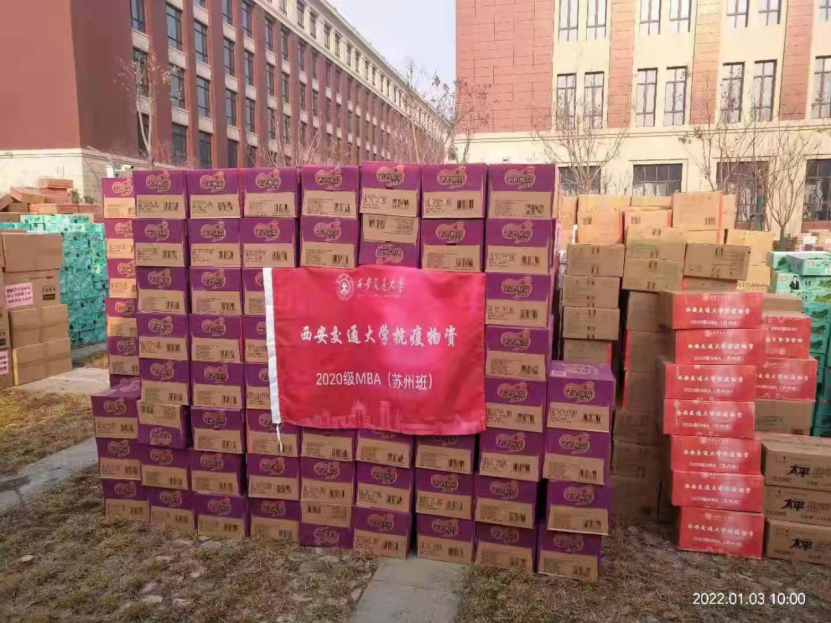近期,西安疫情牵动着社会各界的心,远在千里之外苏州的2020级MBA同学们与母校师生心连心同感受。大家不约而同的向西安的师长和同学致电慰问并要求捐赠抗疫物资,共克时艰。短短两日,同学们不但完成了捐款,还采购了价值达5万元的口罩、饼干、方便面等物品专车发往西安。2020级MBA(苏州班)同学向母校师生捐赠抗疫物资不仅彰显了同学们的社会情怀和责任担当,也体现出了大家对母校的深厚情谊,可谓“千里献爱心,同窗情谊长!”