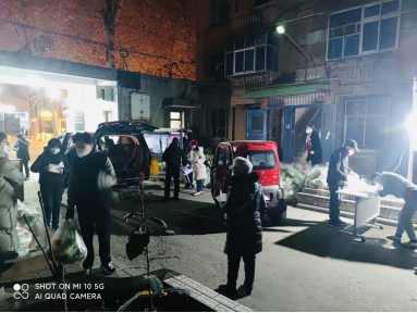 2021年12月30日,在收到政府运送的“爱心菜”之前,财经西院的志愿者们,在年过六旬的志愿者负责人康金勇同志的组织下,便开始筹划如何把党和政府的温暖,能够在天亮之前,第一时间送达每位居民的手中。他们开会集思广益,逐楼逐户摸排,对行动不便的老弱病残,一一登记在册,并提前安排志愿者负责把菜送到家门口。当天晚上11点多,蔬菜运到家属院门口后,他们立即放下一天的劳累,冒着零下四、五度的低温,连夜分发,同时逐楼逐户送到困难居民手中,一直忙到第二天凌晨结束。