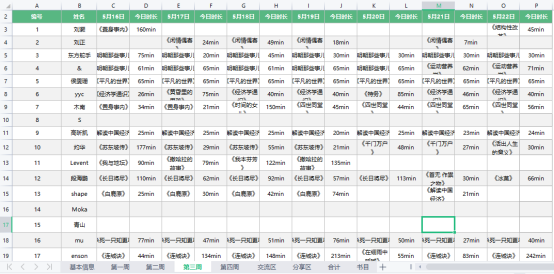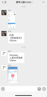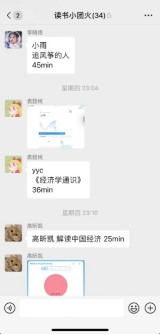 本次活动通过自选书目,线上(微信群组)打卡进行,活动一经发布,便吸引了同学们的踊跃参与,据统计,本活动报名参与人数33人,为期28天的读书活动同学们累计阅读时长32081分钟,共计阅读书目84本,人均阅读时长达34分钟/日。其中,坚持每日读书15分钟以上人数为24人。