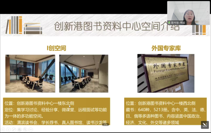为提升学生文件检索技巧,增强学生科研能力,图书馆资源与服务概览讲座由杨超老师主讲。杨超老师逐次介绍了创新港图书资料中心空间、图书馆馆藏资源概况、常见中英文电子资源、读秀学术搜索等。杨超老师以“区块链”关键词为例,讲解了Web of science跨库检索平台等搜索引擎的使用方法。同学们通过此次讲座,学习了基础的数据库检索方法,为后续研究工作打下良好的基础。