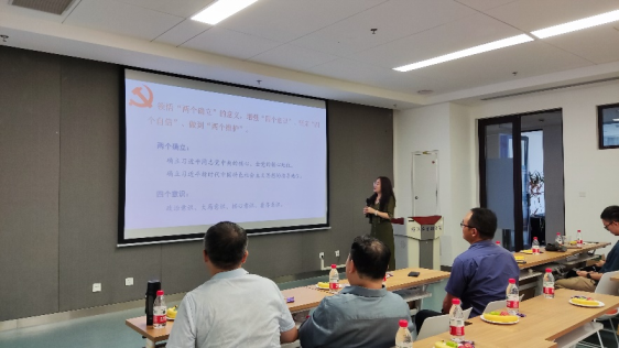 随后,财政系党支部、硕2172、硕2174党支部开展了“喜迎二十大 奋进新征程”联合支部主题党日活动。在宋丽颖书记的领读下,党员们朗诵了“两个确立”、“四个意识”、“四个自信”和“两个维护”,号召党员们坚定信念、认真学习和工作,以优异成绩迎接党的二十大胜利召开。本次活动加深了教师支部与学生支部的沟通和互动,增强了党员们的凝聚力、向心力和创造力。