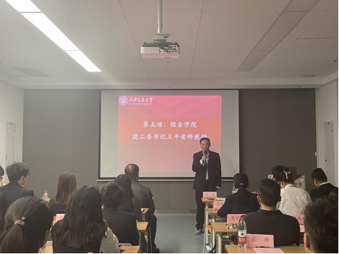 团工委书记王平老师致辞,王老师代表院团工委对大会的召开表示热烈的祝贺,对过去一年来研会组织所做的工作给予积极的肯定。并对代表们提出了三点希冀:第一,要不断提升自己的政治觉悟,明辨是非,政治立场坚定;第二,要有使命感与责任感,在同学中要做正确的引导人;第三,注重提升自己的综合素质,学会理性看待问题,在遵守学校规章制度的前提下提升自我。同时希望新产生的一届学生组织能够继承优良传统,勇于创新,敢于担责,踔厉奋发,积极为学校、学院发展做出贡献!并预祝本次大会取得圆满成功!
