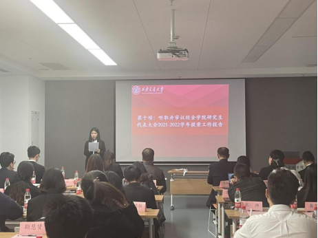 第二十二届研究生会主席团候选人张瑞杰总结了经金研会在上一学年的工作开展情况,并提出工作展望。91porn
