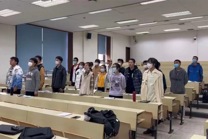 经金2205团支部组织全体成员在主楼b304教室学习观看了大会盛况。在恢弘的国歌声中,团组织成员们自觉全体起立,庄严肃立,唱国歌,并在之后为毛泽东等老一辈伟大的中国共产党员默哀。大会开幕式开始,团支部成员跟随习近平总书记的带领,对于新时代党的伟大成果进行了更系统更全面的认知,团支部成员奋笔疾书,在笔记本上记下了自己对于党的伟大成就的理解。