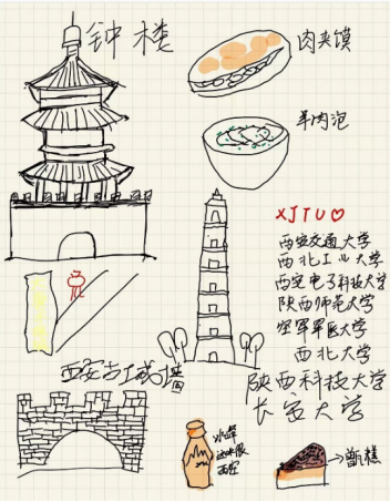 定向闯关的关卡设置着眼于传统文化,辅以趣味游戏的形式,闯关成功即可获得义卖物品。首先将全体成员随机分为两组,由钟兆琳先生的生平以及初阳亭名字的来历引出各组的集合地点--钟兆琳雕像和初阳亭,而后发布第一项任务:画出或写下你心目中的传统文化或者西安,引导同学们回忆传统文化内容。其次,由“莫愁湖边走,春光满枝头”和“胭脂坡上月如钩”引出任务二的地点,并在此进行关于城墙历史文化的快问快答,拓宽同学们对于古城墙的认识。最后,由“戎装学者交大掌门”和“野火烧不尽,春风吹又生”引出西花园和白居易东亭遗址,在此进行你画我猜,内容涉及皮影文化、大唐文化等,在欢声一片中增强了团支部凝聚力,也加深了同学们对于传统文化的理解。