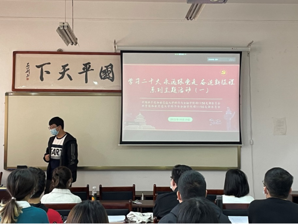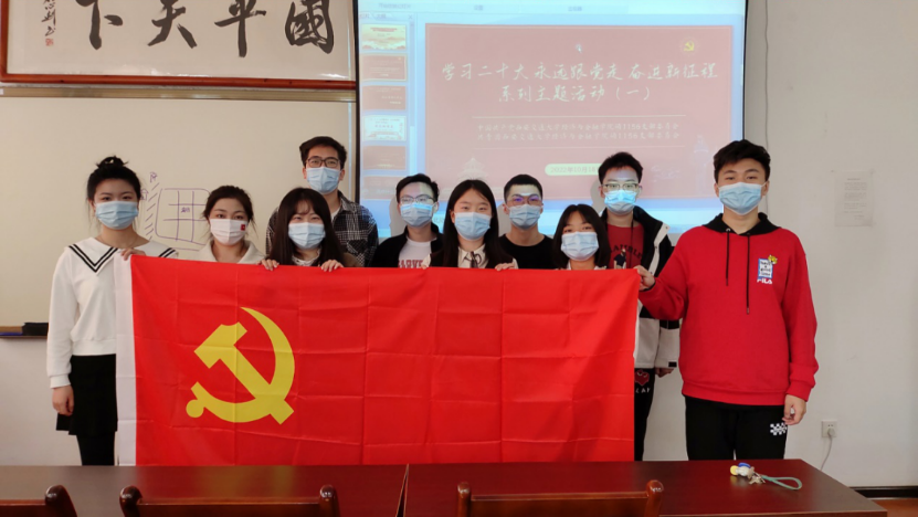 红心颂党恩,热议二十大。党支部书记王婷和团支部书记鞠慧贤分别进行发言,总结了本支部上学年的工作情况以及今年的工作规划,分享了学习中国共产党第二十次全国代表大会报告的思想感悟,并组织全体同学讨论交流。