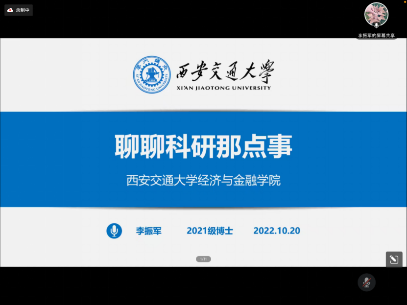 学院2021级博士研究生李振军为同学们介绍了继续深造的科研类型、科研目的、发表论文的过程及注意事项、申请转博的相关经验等。李振军提醒同学们一定想清楚选择读博这条路是为了什么,并提醒同学们注意走上学术研究这条路之后的科研素质问题。