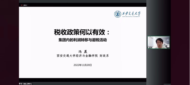 获奖名单宣布当日,冯晨博士还作为十位获奖者的代表向大会评委、专家和直播观众分享了自己的最新研究工作《税收政策何以有效:集团内的利润转移与避税活动》,并获得了专家的点评和高度赞扬。