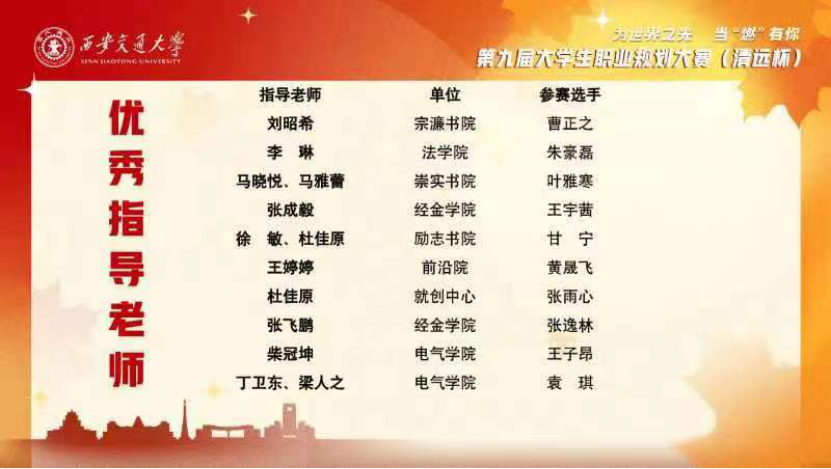 赛道“人民公仆”人才计划一等奖获得者张逸林,他规划的目标职业为基层公务员,他说自18年入校以来,在浓厚家国情怀的熏陶下,胸怀大局,无私奉献的西迁精神给他留下极其深刻的印象,这促使他在校期间尽可能多的去尝试不同的学生工作与志愿活动。他希望通过定向选调的方式,成为西部省份的一名基层公务员,将青春绽放在这片曾求学七载的厚重土地上,将自身价值的实现融入到服务人民、建设西部这样宏伟的时代目标中去。