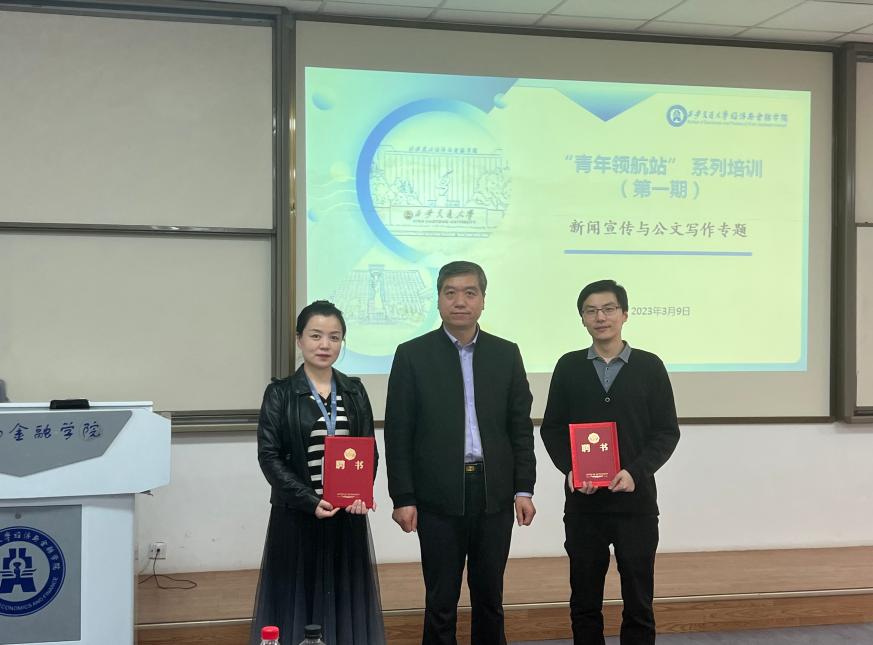 另外,学院聘请刘昱含老师和翟亮智老师担任学院学生社团指导教师,希望他们以后多关注学院学生活动,共同推进全员育人工作。
