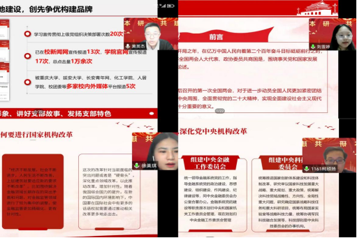 金融专硕党支部孙雨晨、徐美琪、柯颀扬、胡健同学深入解读了《党和国家机构改革方案》,详细讲解了党和国家机构改革历史、改革原因、改革内容和改革意义,从金融专业角度重点解读了党和国家对金融机构改革的重要意义。他们谈到,此次改革突出重点行业和领域,针对性比较强,力度比较大,涉及面比较广,触及的利益比较深,着力解决一些事关重大、社会关注的难点问题,对经济社会发展将产生重要影响。他们指出,此次金融机构的改革将进一步增强金融监管力度,强化金融服务实体经济功能,增强投资者保护,提高金融管理效能,提高金融队伍素质与水平。