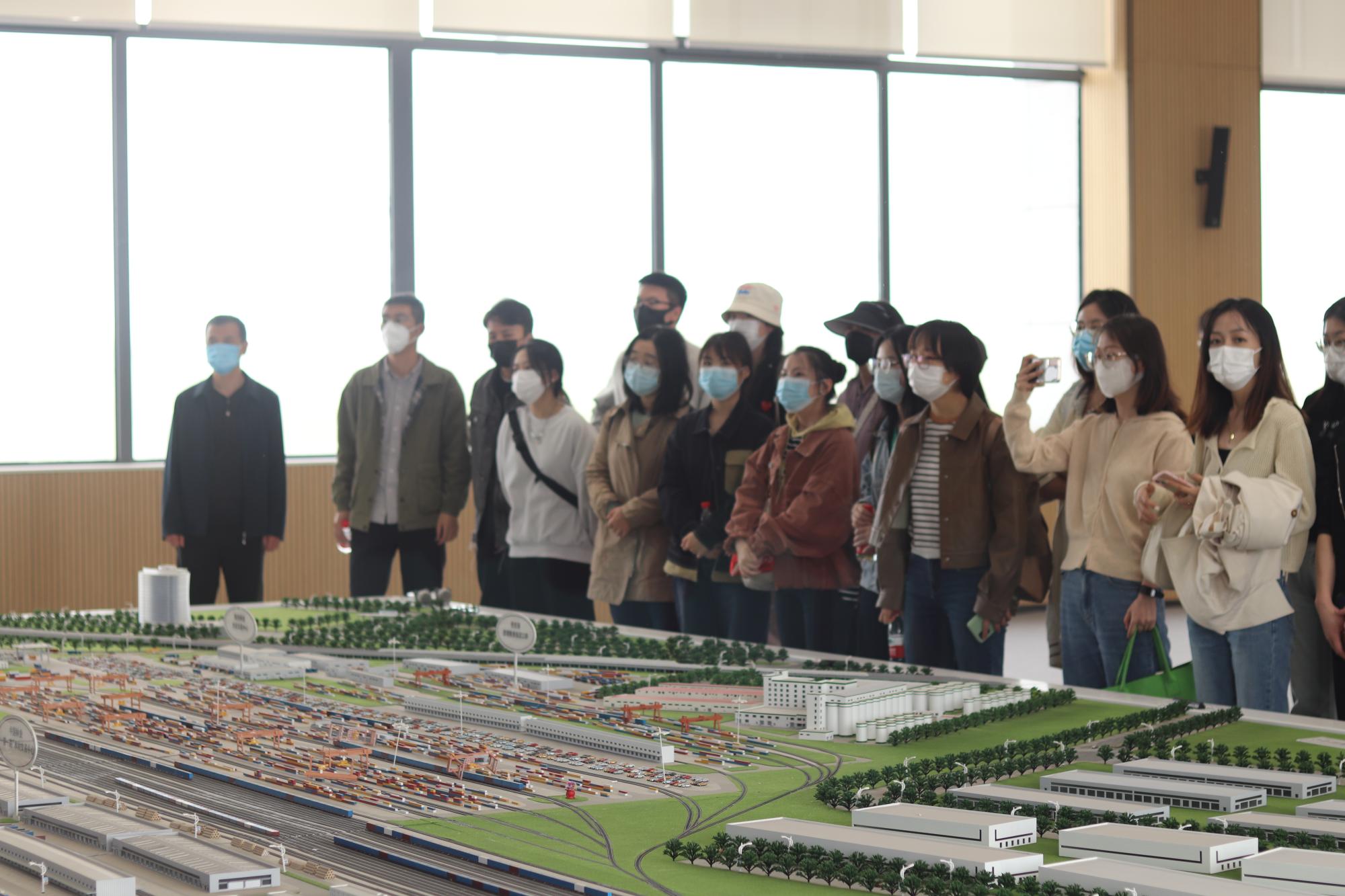 在西安铁路集装箱中心站,西安自贸港建设运营有限公司总经理袁小军通过宣传短片以及模拟模型,向同学们生动介绍了中欧班列西安集结中心的功能分布和建设运营情况,尤其是中欧班列(长安)号的运营现状以及班列在推动陕西深度融入共建“一带一路”中的重要作用。随后,同学们实地参观了中铁联集西安中心站的布局,真实感受了内陆港设立的重大意义以及中欧班列在联通中国与世界中的桥梁与纽带作用。