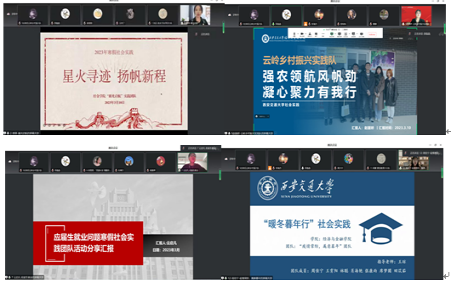 讲好家乡故事,助力乡村振兴。云岭乡村振兴实践队聚焦云南省农业发展现状,为筑牢脱贫攻坚成果注入青春动力;旬阳市红军镇红军村考察团选定旬阳市红军镇红军村,了解当地旅游资源、帮扶产业。赓续红色血脉,传递青年之声。“星火传递”党史学习实践团,赴东索村革命烈士纪念馆、八路军兰州办事处纪念馆等多处家乡红色地标;红色传承小分队以遵义会议为中心,重走革命历程,发扬革命精神。观社情民生,行青年担当。素质教育小分队聚焦“五育并举”教育主题,赴多地中小学调研“五育”推行现状、问题与促进方案;“疫情常防,属意暮年”实践队则对后疫情时代下的老年人疫情防控等社会热点问题开展了深入调研。以文化之美,扬中国形象。“西望长安,情融非遗”文化宣传队关注非物质文化遗产,致力推动西安非遗文化融入当代社会;我从哪里来—故乡文化寻访小队探寻故乡文化,感受底蕴传承,通过观察社会万象体悟乡土中国。