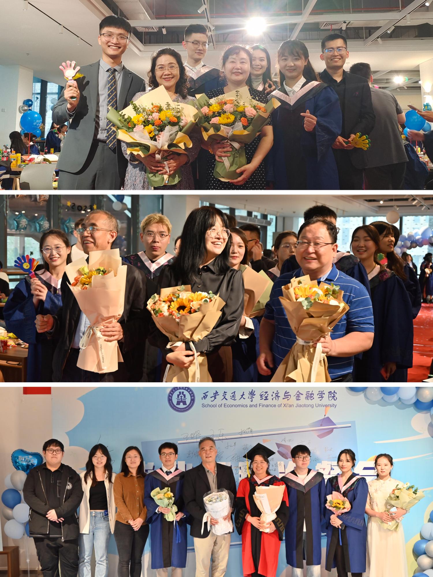 红毯秀暨冷餐会伊始,周建伦书记发表致辞,他对2023届毕业生顺利完成学业表示祝贺,对培养学生辛勤付出的老师们表示衷心的感谢!希望同学们永远紧跟时代步伐,始终保持对新领域、新事物、新思想、新技术的好奇心,努力成为引领时代发展、文明进步的奋斗者,并祝愿毕业生前程似锦,常回来看看。教师代表李江龙老师嘱咐大家毕业后将会面临全新的机遇和挑战,希望大家继续保持科研精神,勇敢地面对挑战。省级优秀毕业生代表马瑞回顾入校九年来,在学校、学院老师们的关怀培养下不断成长,最终在交大留下了一个属于交大人的“胸怀大局无私奉献弘扬传统艰苦创业”的印记,并深深表达了对学院和导师的感谢,她表示自己定会牢记嘱托,让青春在奋斗中绽放绚丽之花。