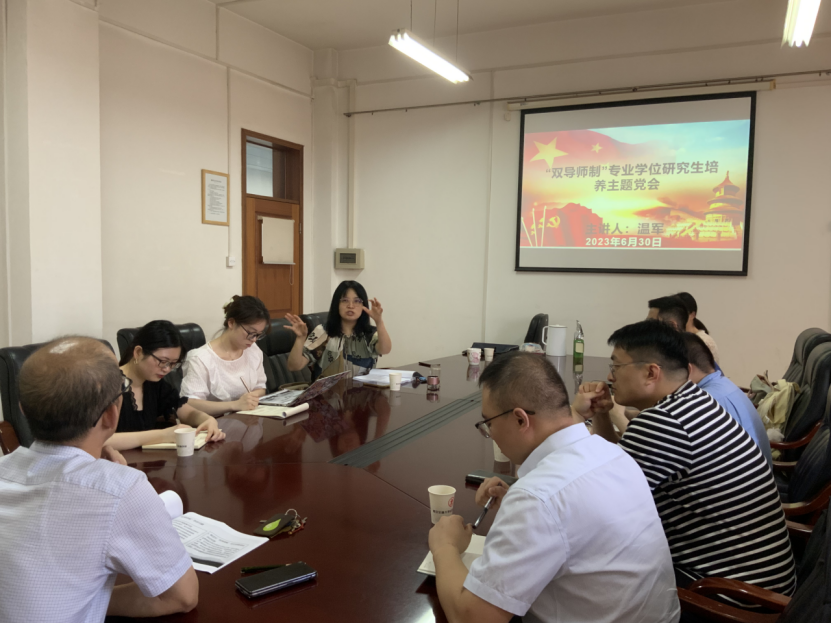 最后,温军副院长对主题党会进行了总结。他强调,我们要认真学习习近平总书记的相关讲话,充分发挥学校和教师的职责,积极推动“双导师制”真正落地,及时发现问题并提出改进措施,推进学院专业学位研究生培养工作的开展。