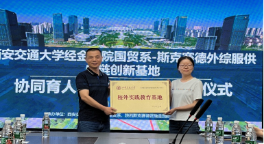 校外实践教育基地授牌暨国贸001班实习启动仪式。学院国贸系主任王增涛教授、副主任闫奕荣副教授,指导教师姚芳博士以及国贸(国际班)001全体学生,西安国际港务区管委会投资促进局局长助理袁方,陕西斯克赛德贸融通国际供应链有限公司西安负责人任静及公司相关人员出席活动。仪式由陕西斯克赛德贸融通国际供应链有限公司刘珂华主持。