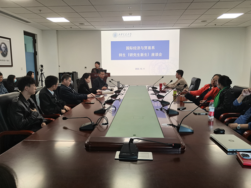 为增进2023级硕士和博士研究生新生对学院和专业的了解和认识,尽快适应研究生阶段的学习和生活节奏,国贸系10月11日下午在创新港涵英楼8121会议室召开了“国际经济与贸易系师生(研究生新生)座谈会”。会议由国贸系闫奕荣副主任主持,国贸系教师代表和2023级全体研究生新生50余人参加了会议。