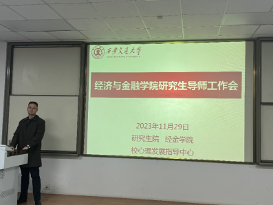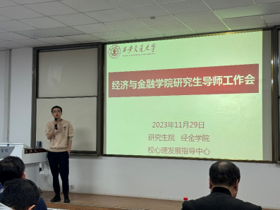于11月29日下午召开研究生导师工作会。校党委研工部部长、研究生院副院长薛周利,学生心理发展指导中心、咨询中心主任姚斌,学院党委书记周建伦,学院研究生导师以及辅导员参加会议。会议由温军副院长主持。