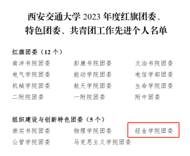2023年度“红旗团委”“特色团委”“共青团工作先进个人”的决定》,经各单位自评、校团委初评、各单位互评、学生评价及答辩评审,我院团委荣获“组织建设与创新特色团委”称号,学院团委副书记霍志远荣获“共青团工作先进个人”称号。