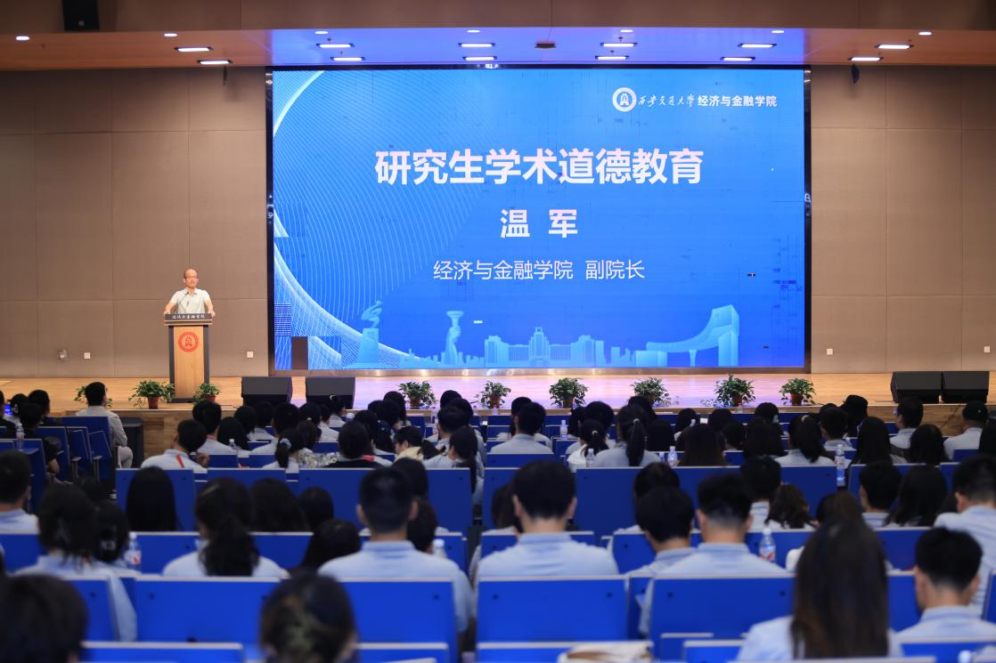 会后,副院长温军教授为2024级研究生新生开展了“开学第一课”《研究生学术道德教育》,引导同学们学习正确的科学研究范式,严格遵守学术道德规范。