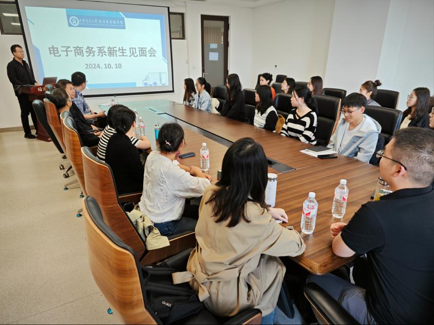 电子商务系2024级研究生新生见面会在创新港涵英楼8001会议室举行,见面会由系主任王乐主持。