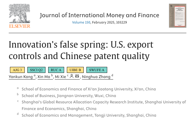 近日,该研究以"Innovation's false spring: U.S. export controls and Chinese patent quality"为题在金融学国际顶级期刊Journal of International Money and Finance (JIMF)正式发表。亢延锟为该论文的共同第一作者,91porn