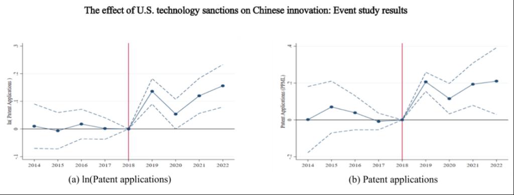 教师亢延锟与江南大学马鑫、上海财经大学解咪、同济大学钟宁桦几位学者开展合作研究,首次系统考察了美国技术封锁对我国创新产出的影响。通过构建专利层面的数据集并进行深入分析,研究发现2018年美国出口管制政策显著促进了中国受限制技术领域专利申请数量的大幅增长,并且国有企业比民营企业呈现出更为显著的增长态势。这一发现不仅丰富了中美贸易摩擦经济后果的研究文献,也为理解外部科技封锁对我国自主创新的影响提供了新的实证证据。